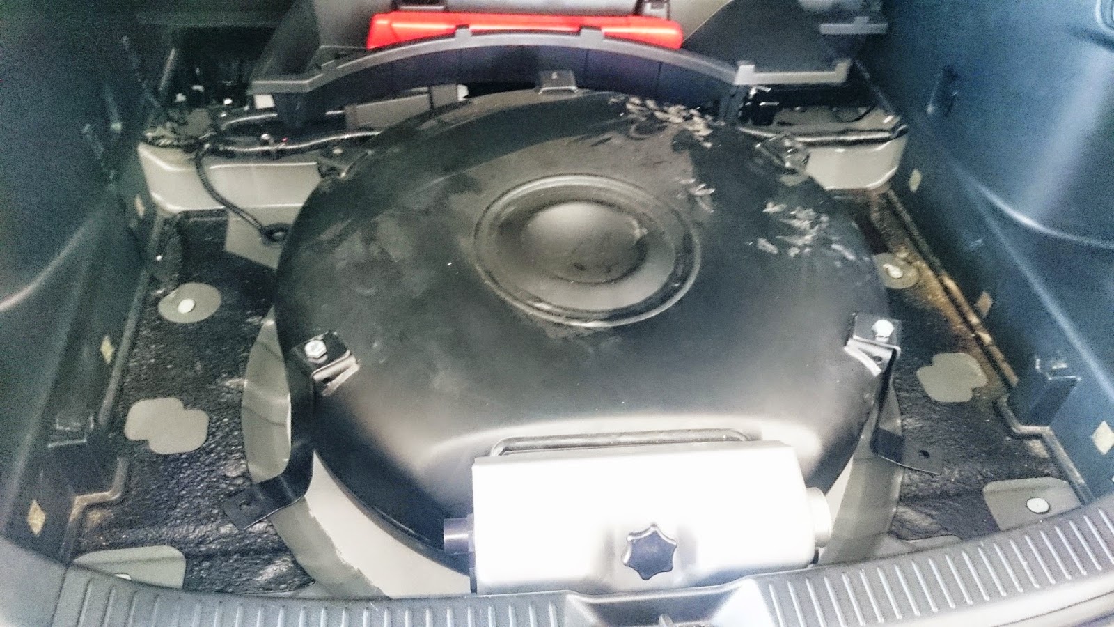 Depósito sobre-elevado zona rueda de repuesto.